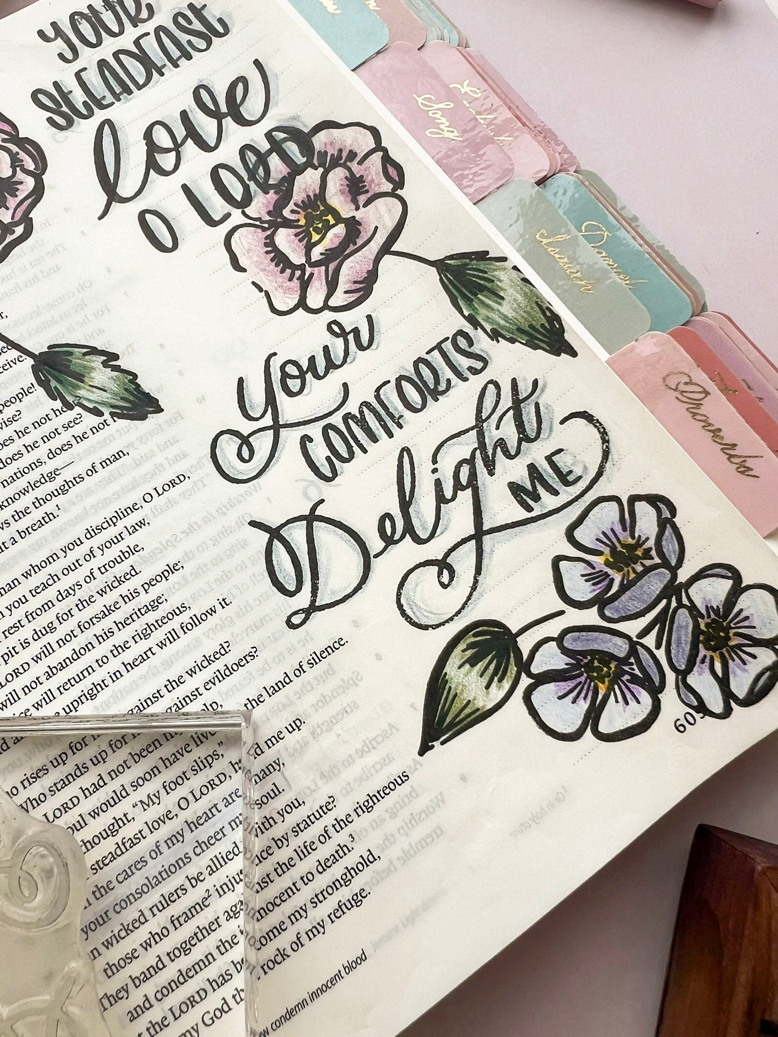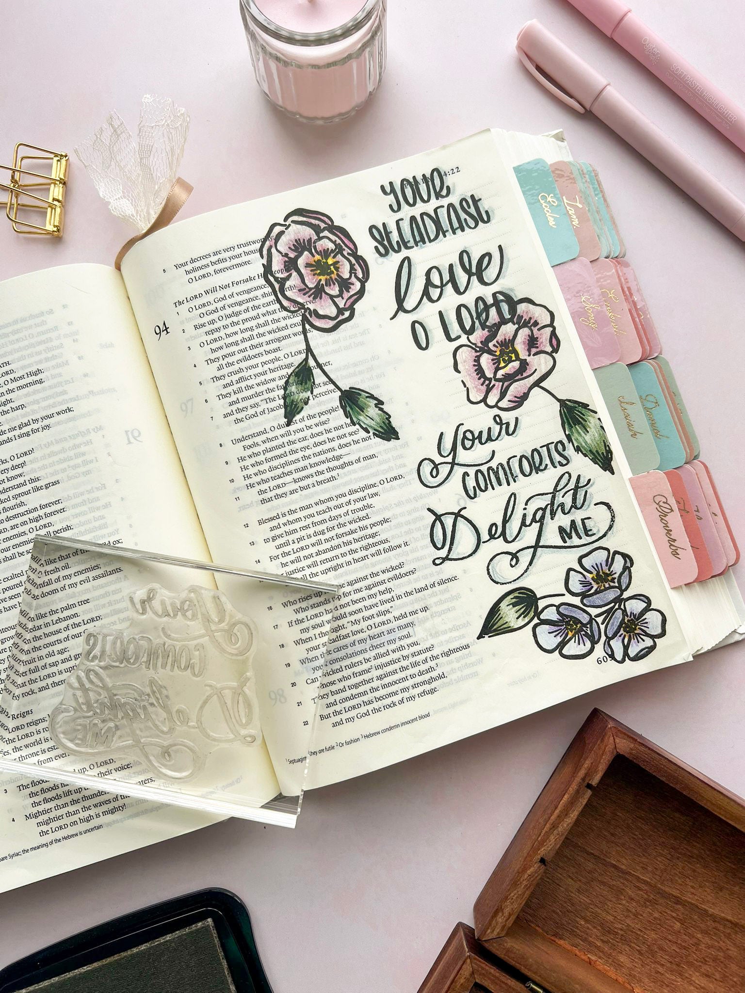 DotK creates scripture-rooted tools for those seeking to slow down and engage deeply with God. From Bible tabs and prayer journals to stickers, stamps, and handcrafted Bible rebinds, each piece is thoughtfully made to nourish your devotional time with clarity, creativity, and intention.