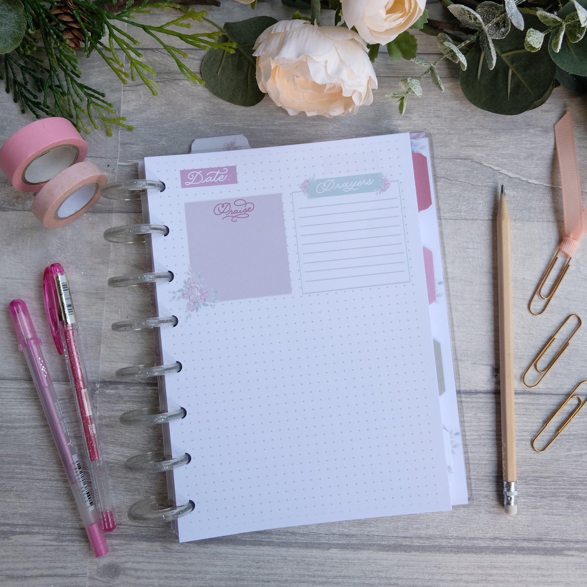 Part of the "Faith Can Move Mountains" planner range from DotK Design, this floral themed a5 disc bound prayer journaling pack is the perfect addition to any disc bound planner or notebook!