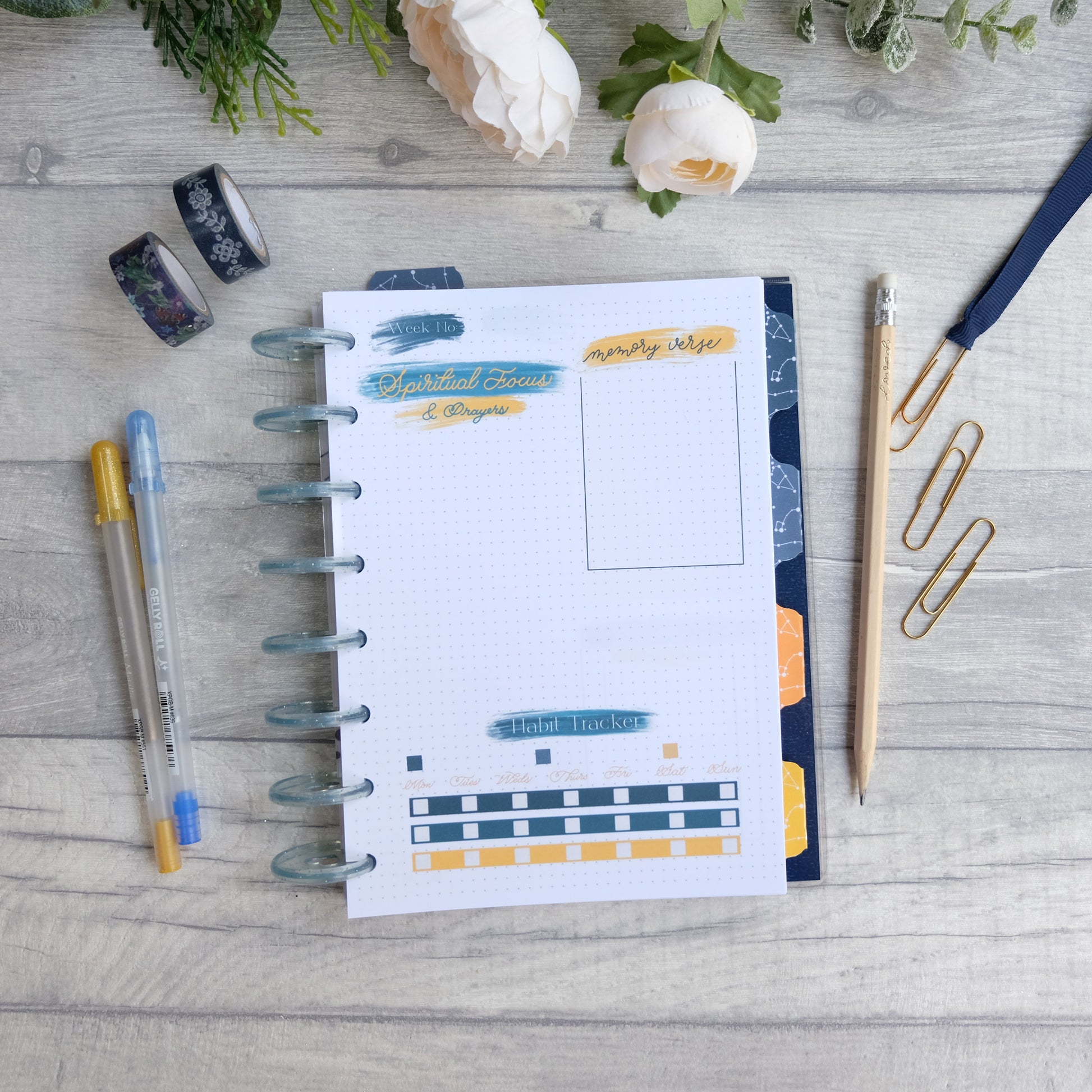 Part of the "Heavens Declare" planner range from DotK Design, this constellation themed a5 disc bound prayer journaling pack is the perfect addition to any disc bound planner or notebook!