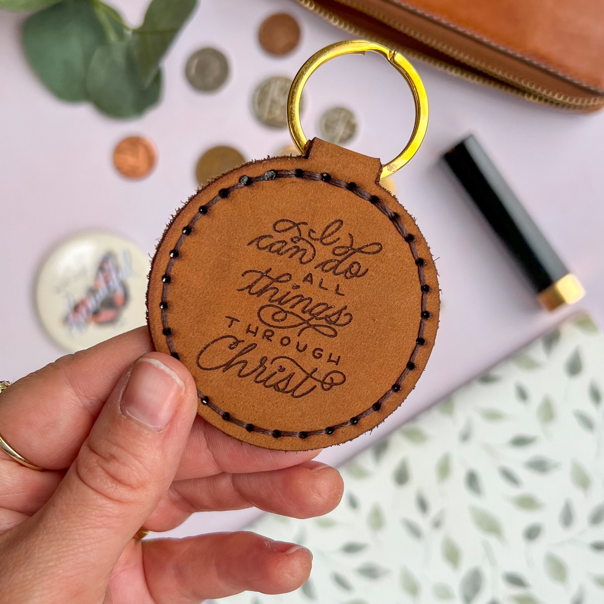 I Can Do All Things Through Christ - Real Leather Key Fob Key Ring