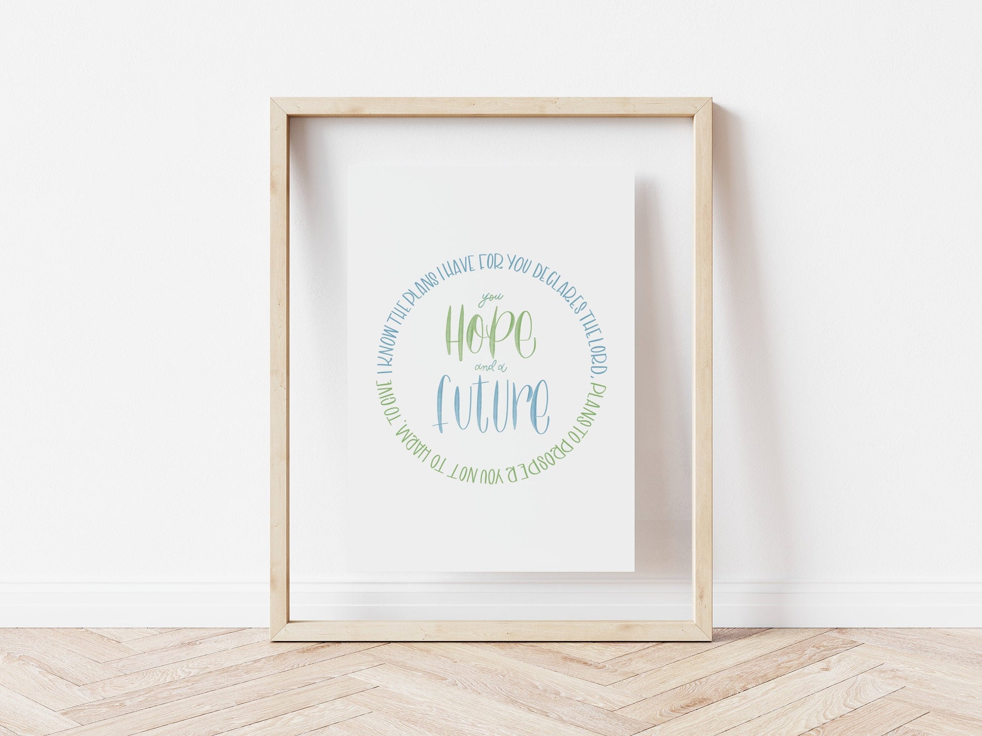 Printed on quality cold pressed 200gsm Watercolour paper - from an original Watercolour brush lettering piece - this excerpt from Jeremiah 29:11 is a wonderful promise from God's Word.