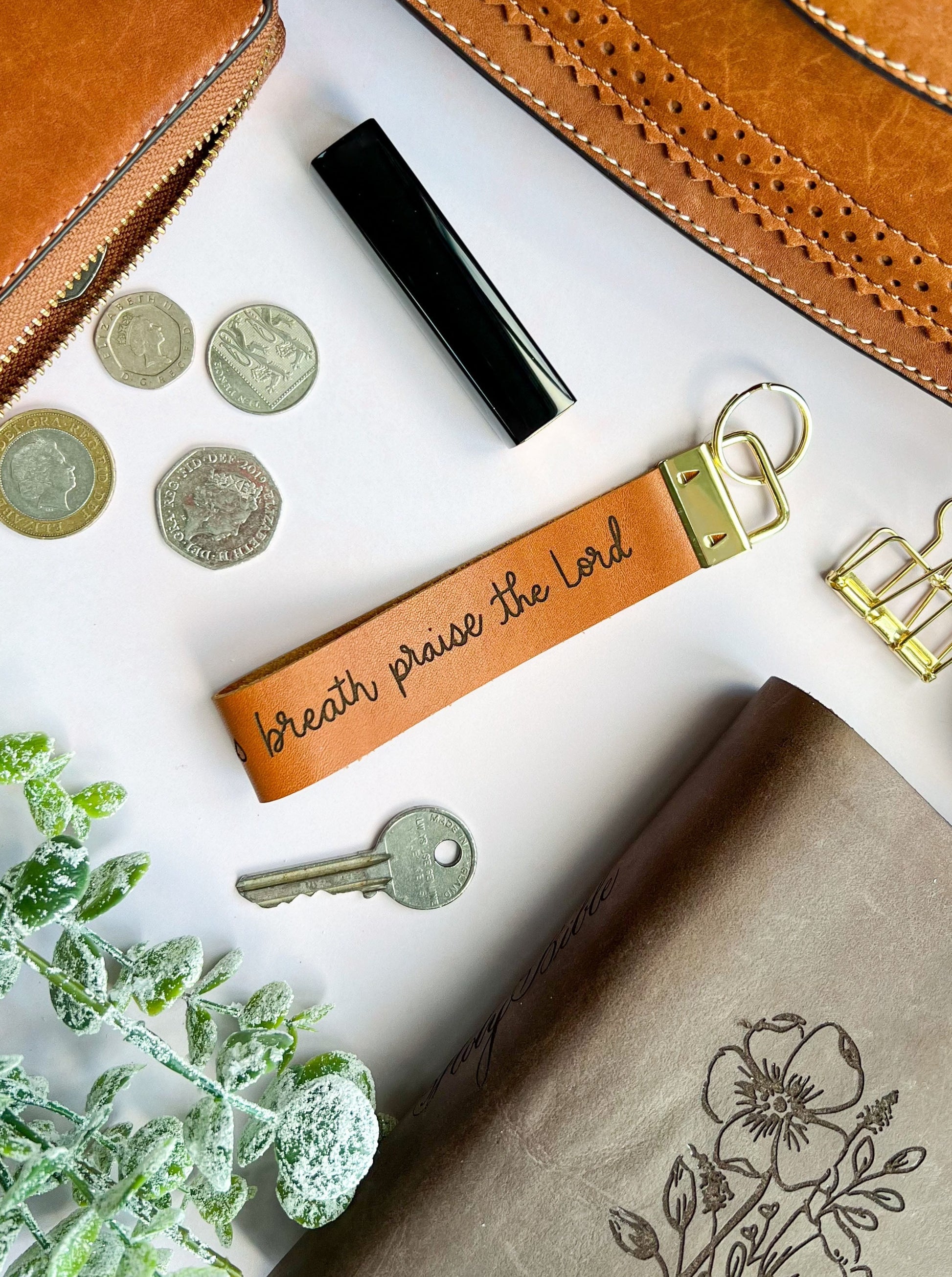 Carry this lovely excerpt from Psalm 150:6 with you everywhere you go with this beautiful handcrafted real leather Key fob.