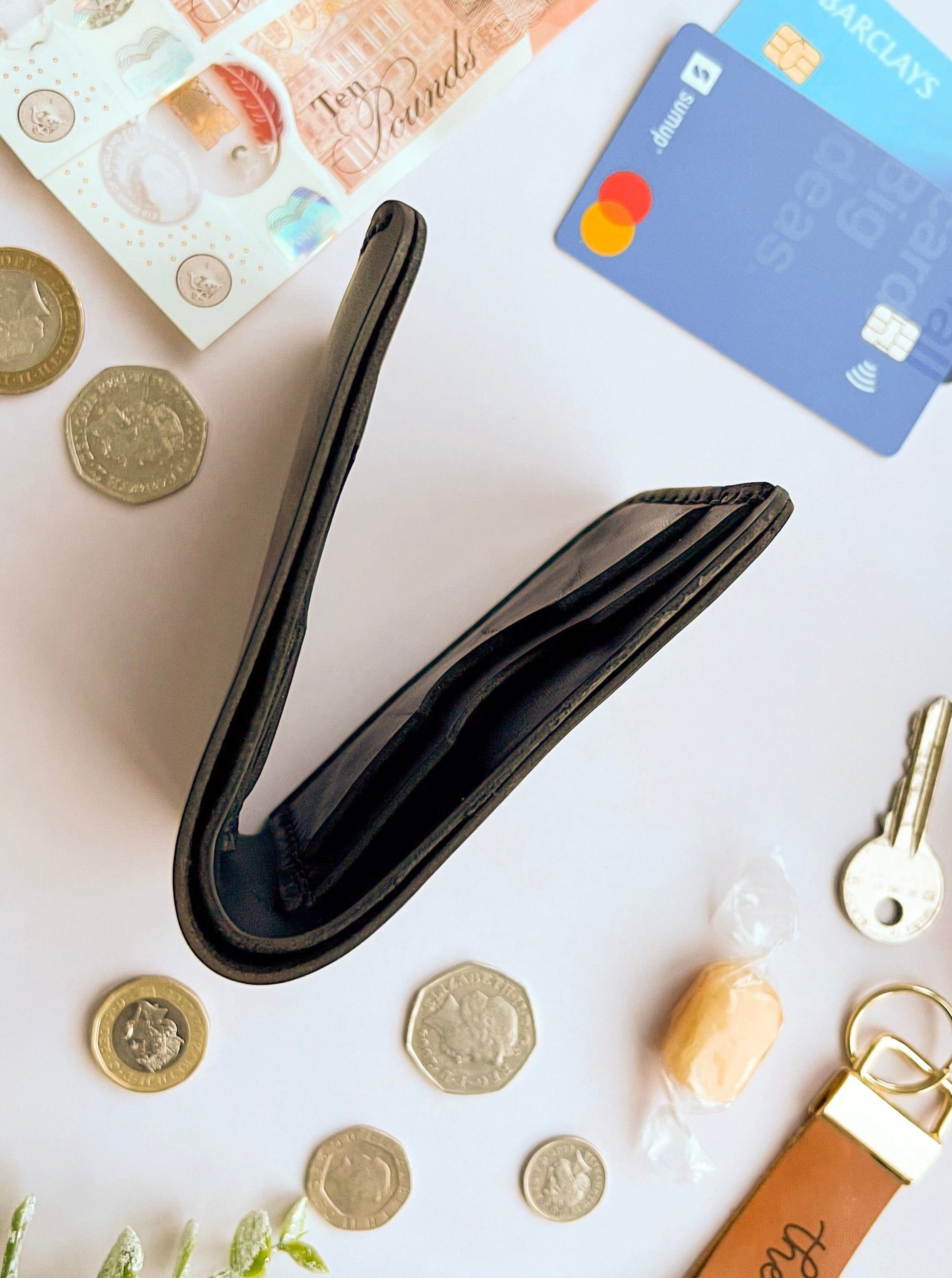Featuring "I have found the one my soul loves" in a script flourish style - taken from an original calligraphy piece by Emma - on the inside card pocket, four credit/debit card slot pockets and a cash pocket at the back. The perfect size for a pocket and keeps your cards & notes organised!