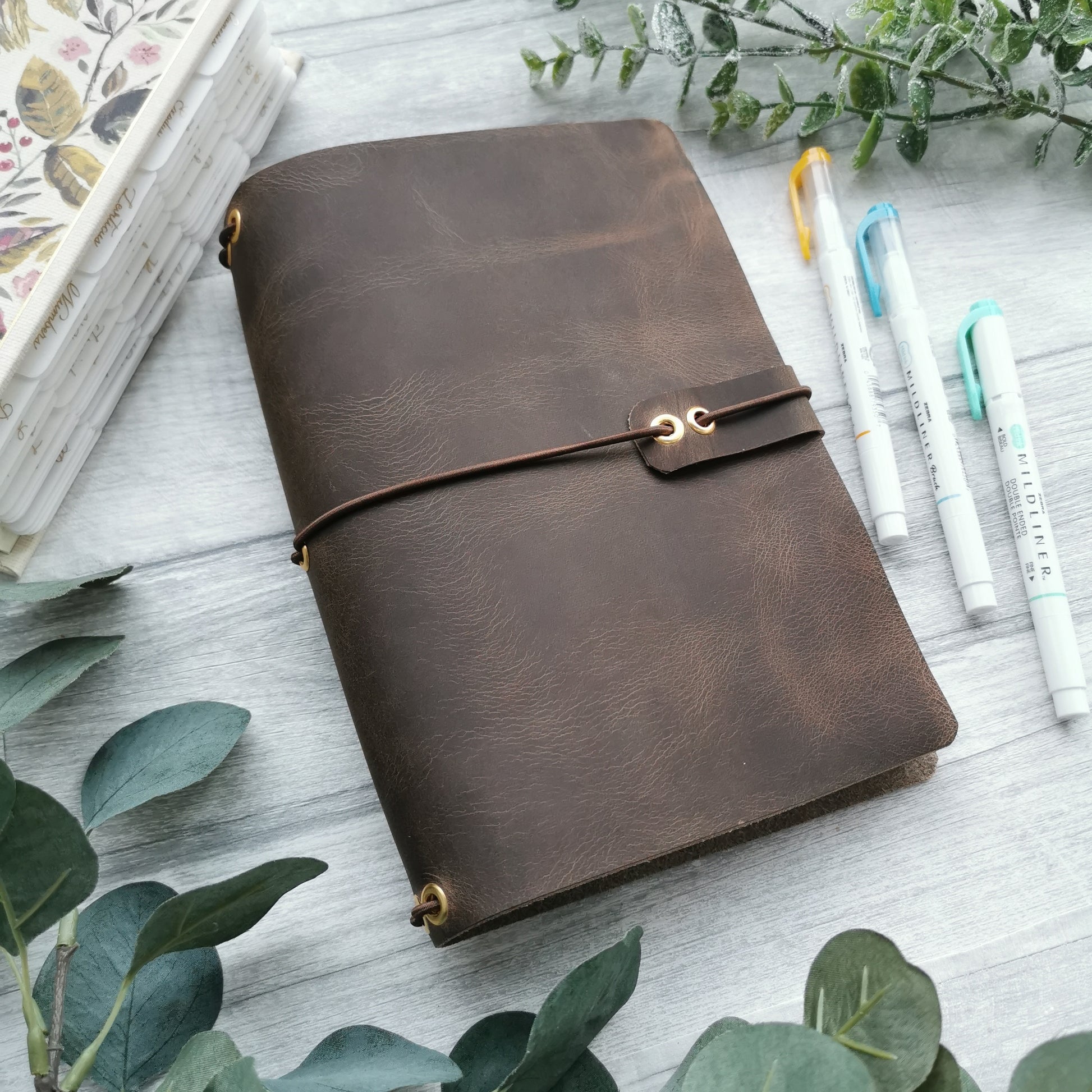 Real Leather Travelers Journal Cover - A5 Journal Cover Prayer - Prayer Journal - Deep Brown Pull up Leather