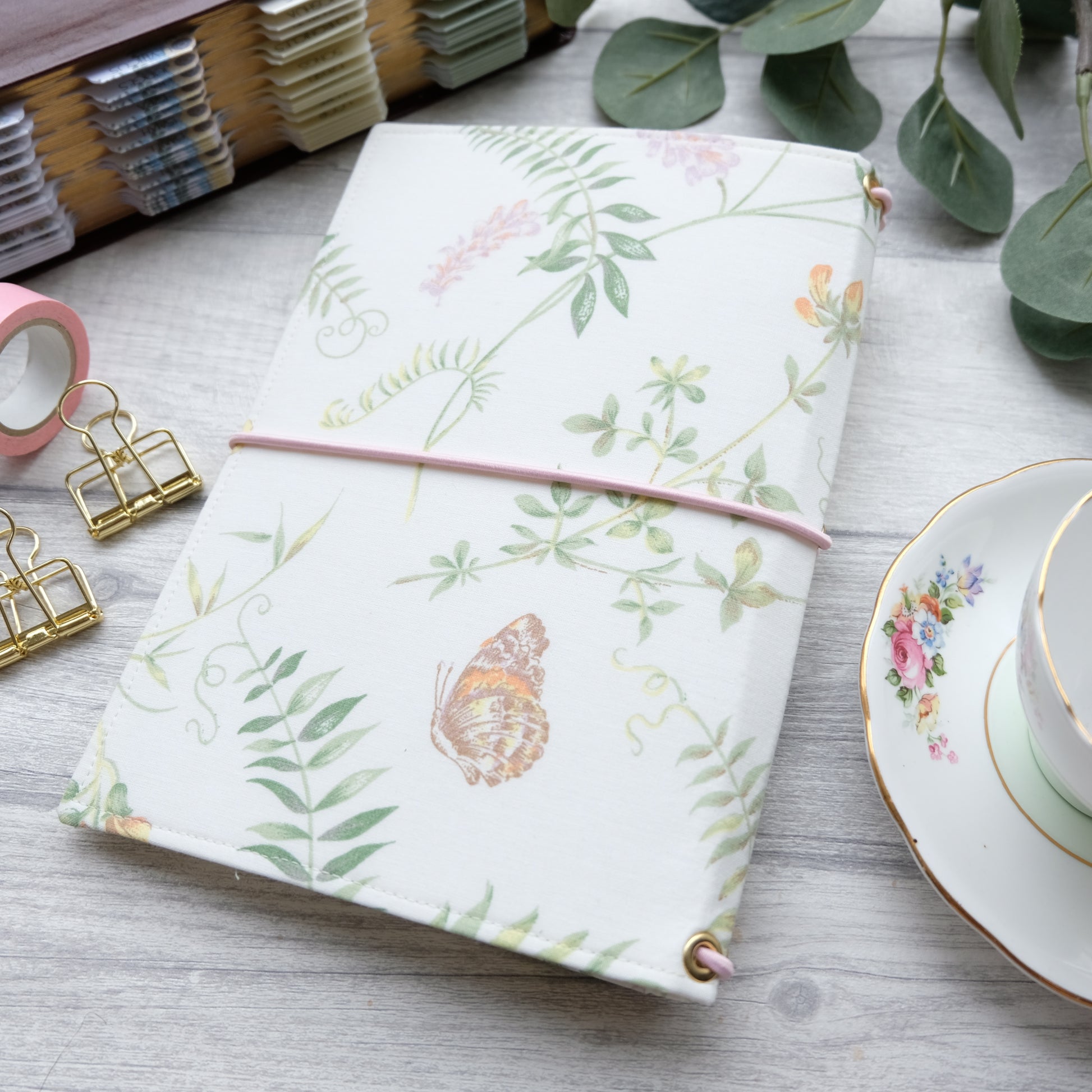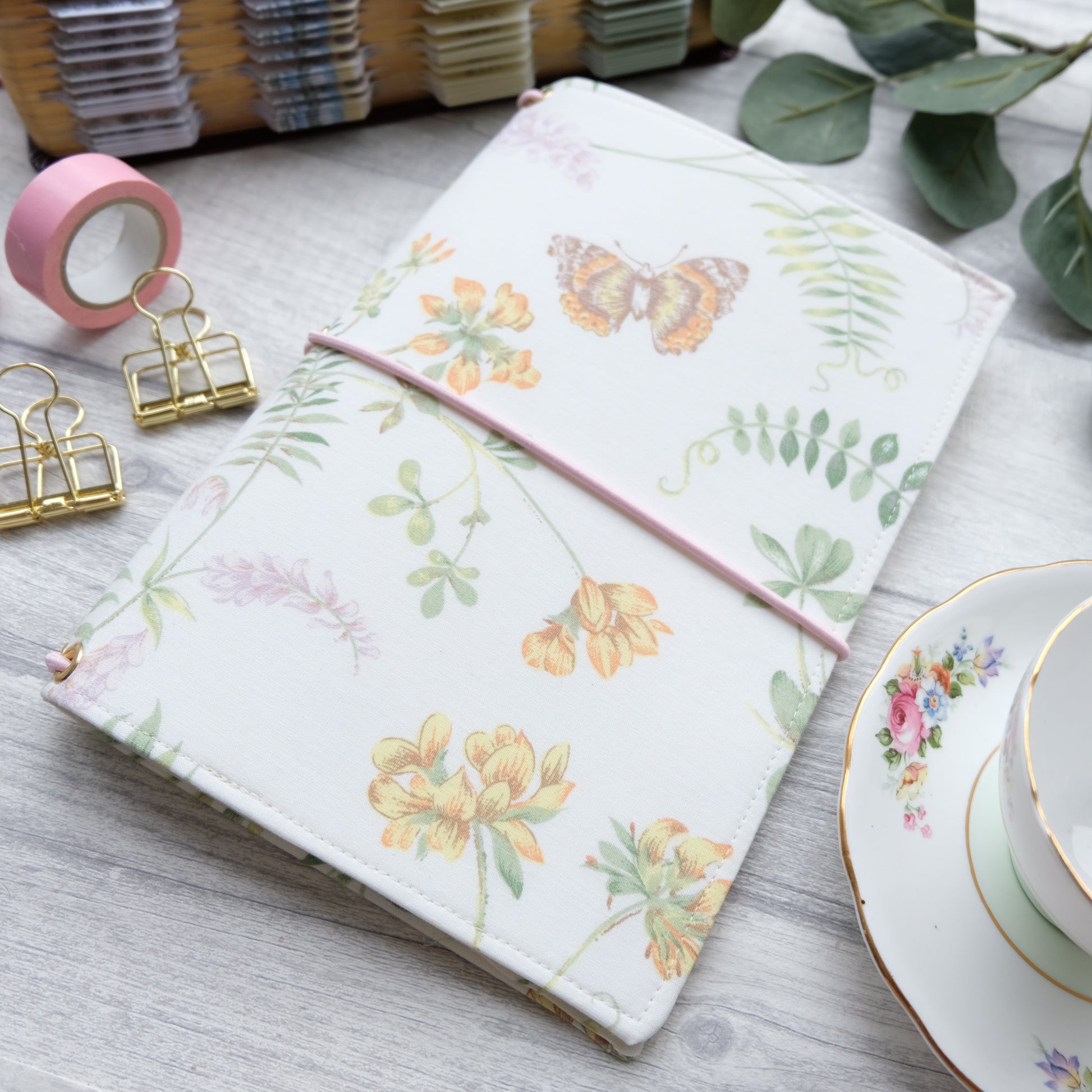 Made from beautiful reclaimed vintage fabric, featuring gorgeous florals and dainty butterflies. This stunning fabric was rescued and upcycled into this pretty journal cover!