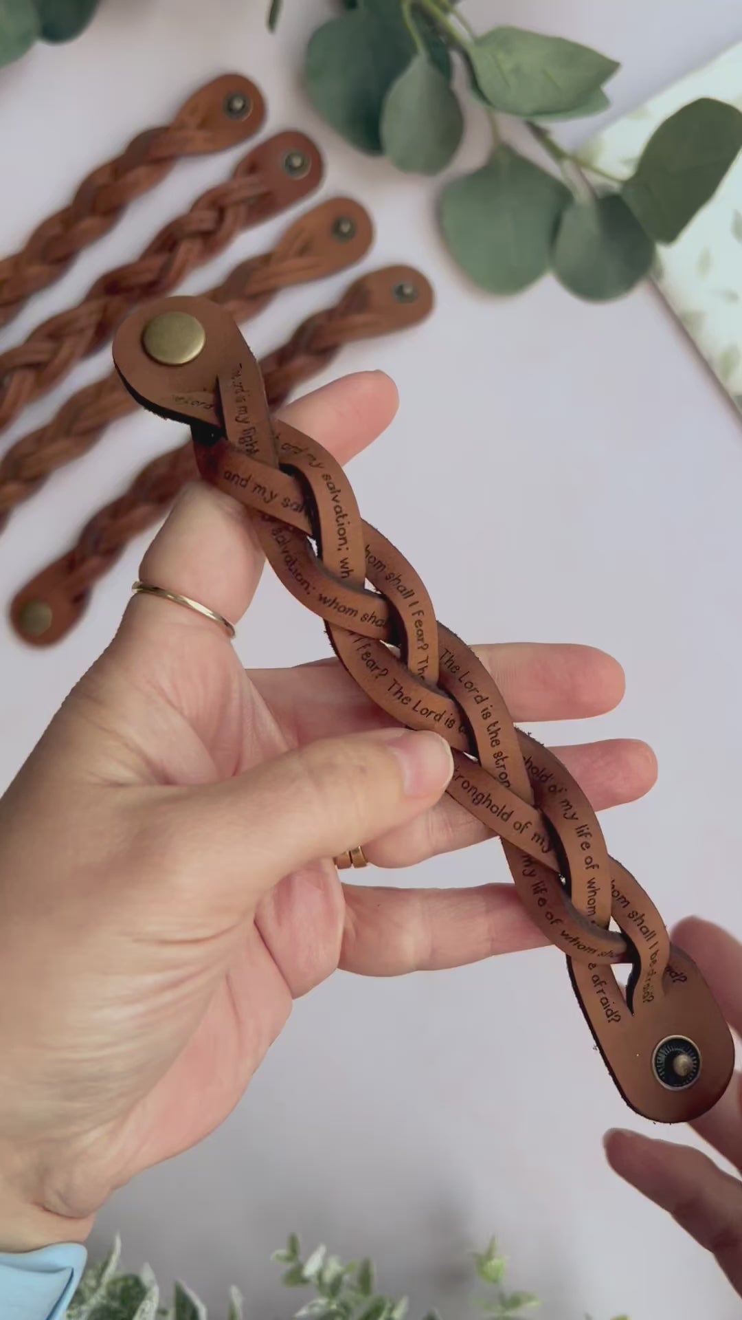 Psalm 27:11 is at the heart of this stunning leather mystery bracelet. Each strand of the plaited design is engraved with the words from this beautiful promise.
