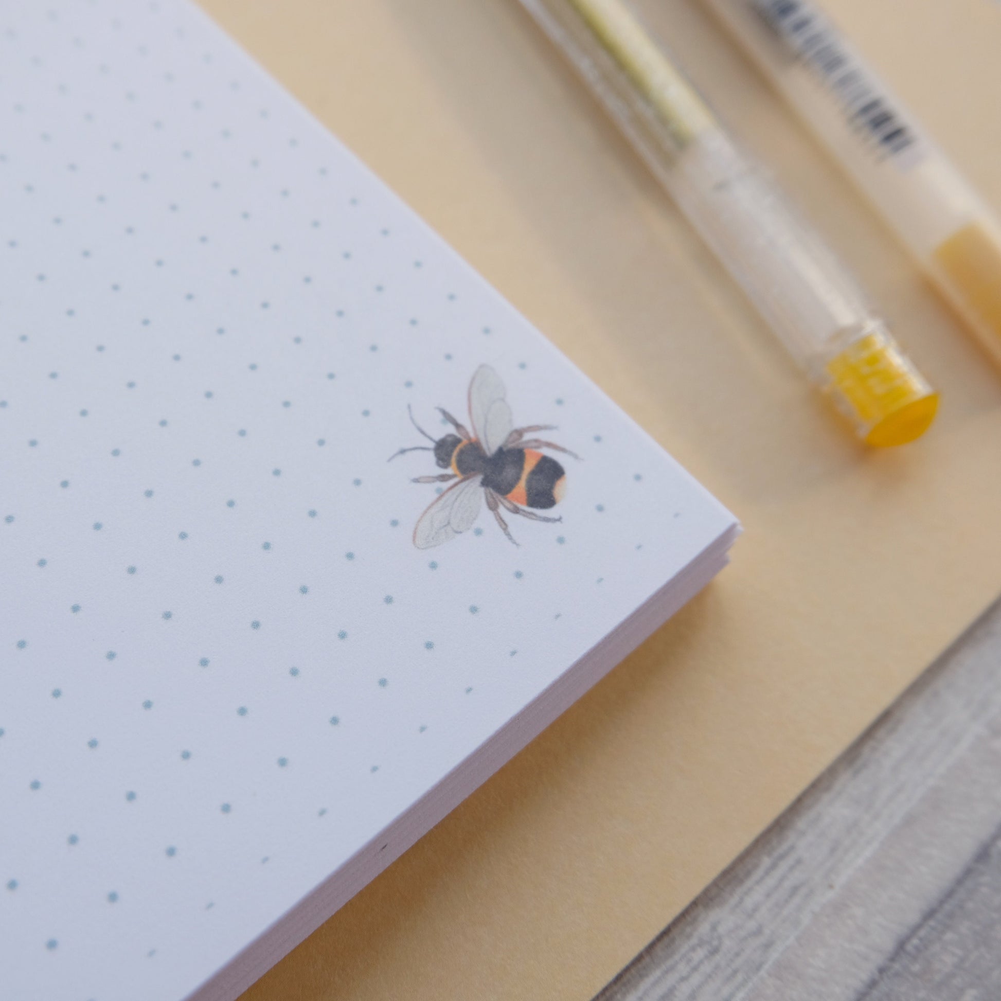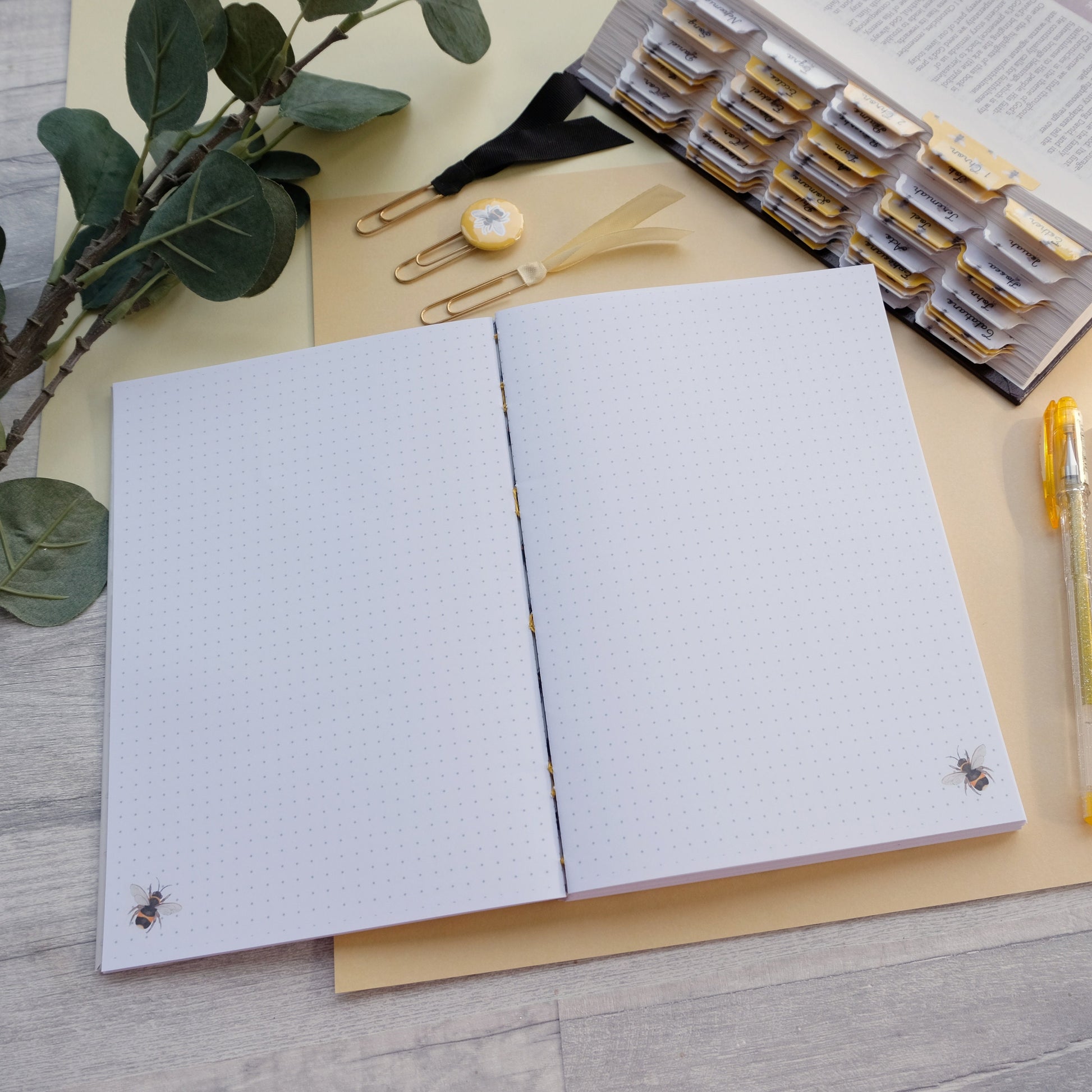 Containing 160 sides (80 pages) - Each 100gsm dot grid page features a small watercolour bee in the bottom corner.