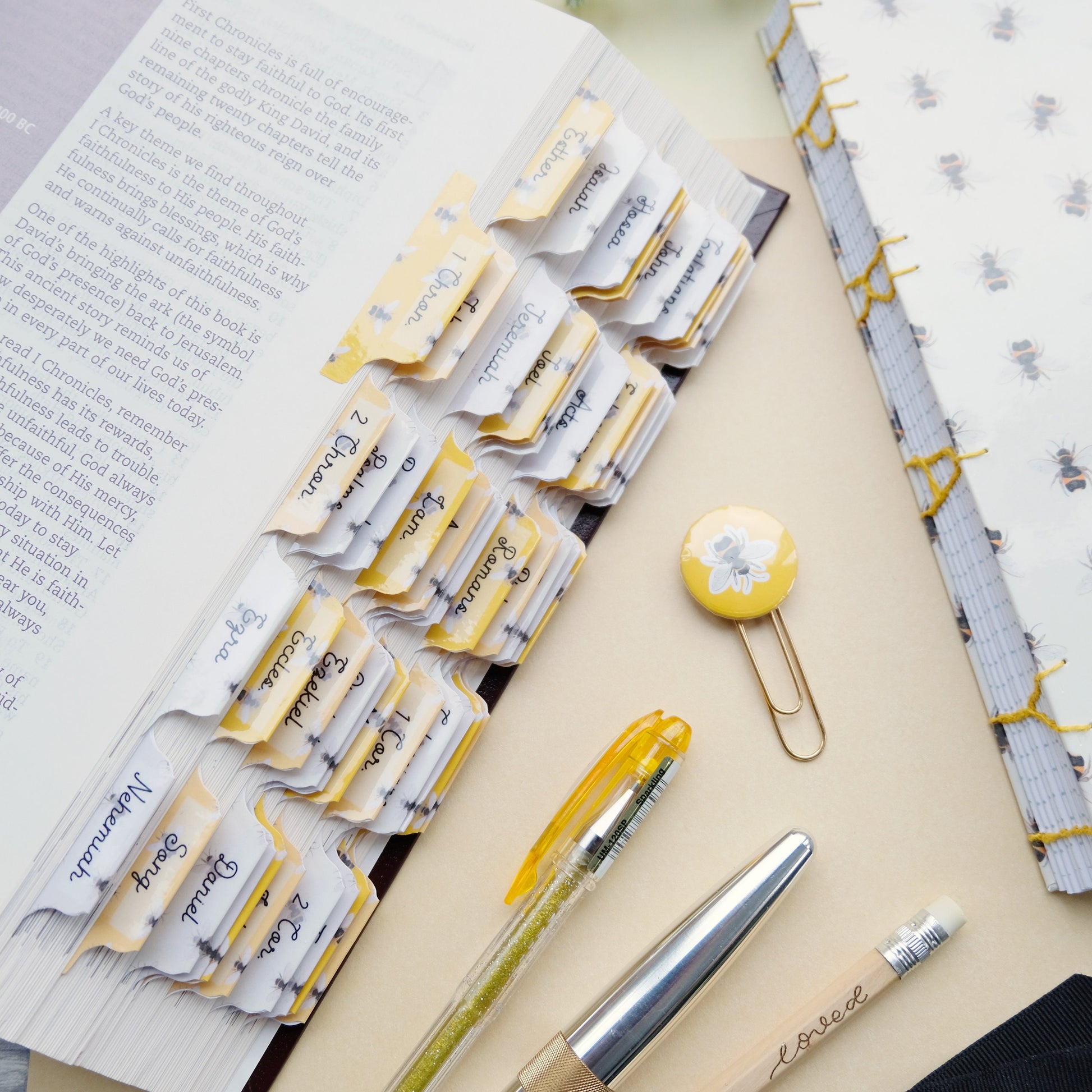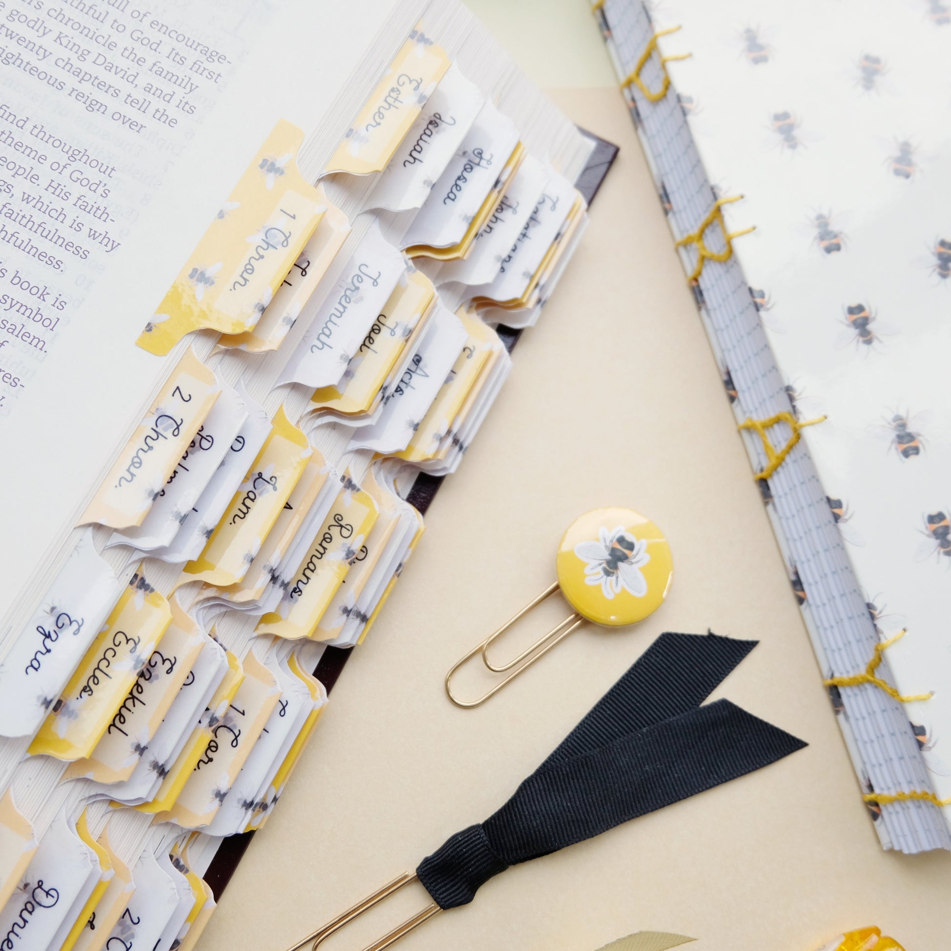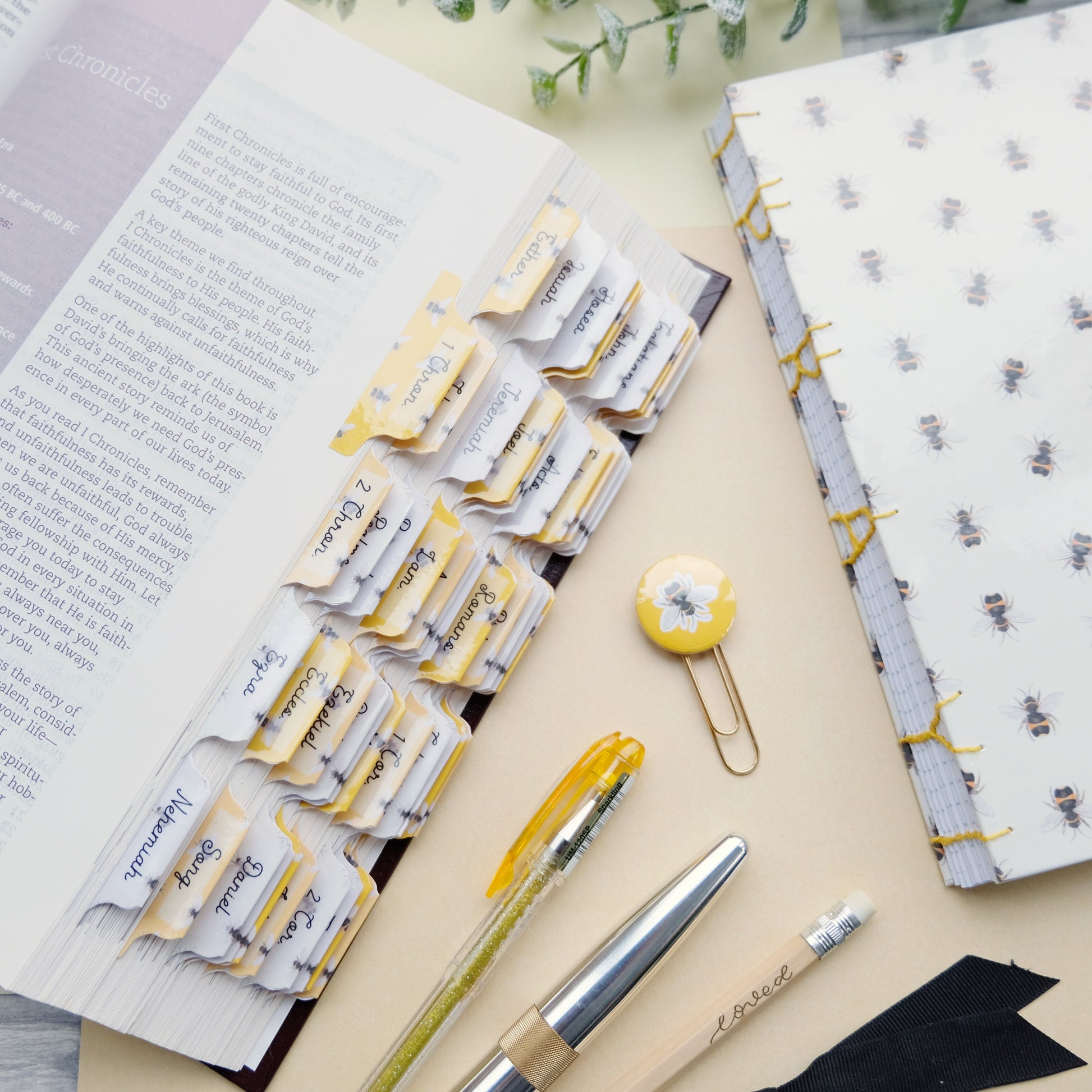Handcrafted in the UK, these Watercolour Bee Bible tabs feature hand-lettered Bible book names - designed to bring clarity and beauty to your time in the Word.